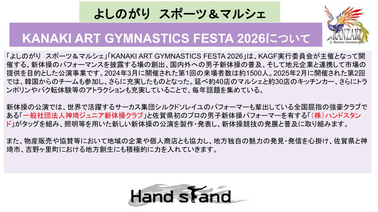 ホーム » よしのがりSports(スポーツ)&マルシェ×KANZAKI ART GYMNASTICS FESTA 2026